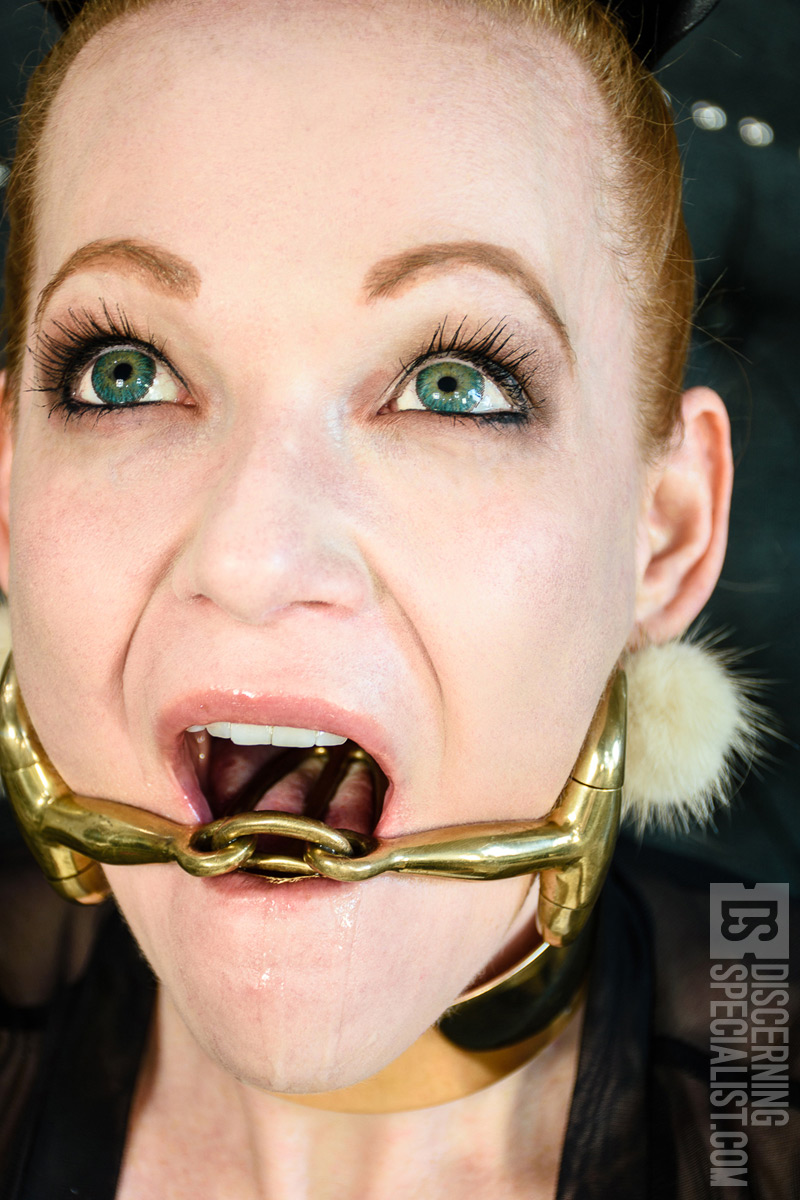 So to sum it up, I think this gag is better for a more advanced user that knows how metal and mouths work together. The wearer should expect some gag reflex training, as well as buckets of drool and shame, lol. Its beautiful to look at, but definitely don’t hook up reigns to it and jerk your pony around ..that would look super hot though, omg. As on most metal bit gags you will want to use bit wrap to protect teeth with more rough play, but sadly that takes away from the pretty look. The quality is in line with all Fancy Steel gear, and I doubt any pony play enthusiast would walk away from this gag disappointed.